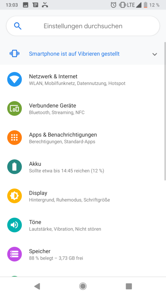 Android P Beta Einstellungen